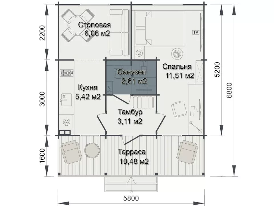 Площадь застройки | 6.80х5.80 м.кв. | |