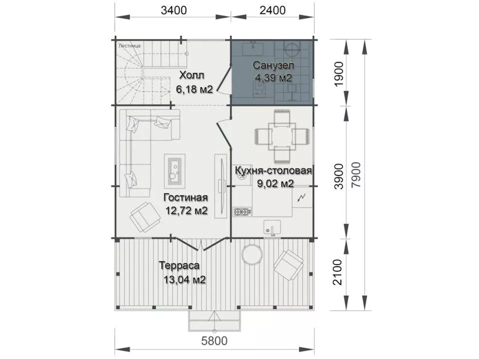 Площадь застройки | 5.80х7.90 м.кв. | |