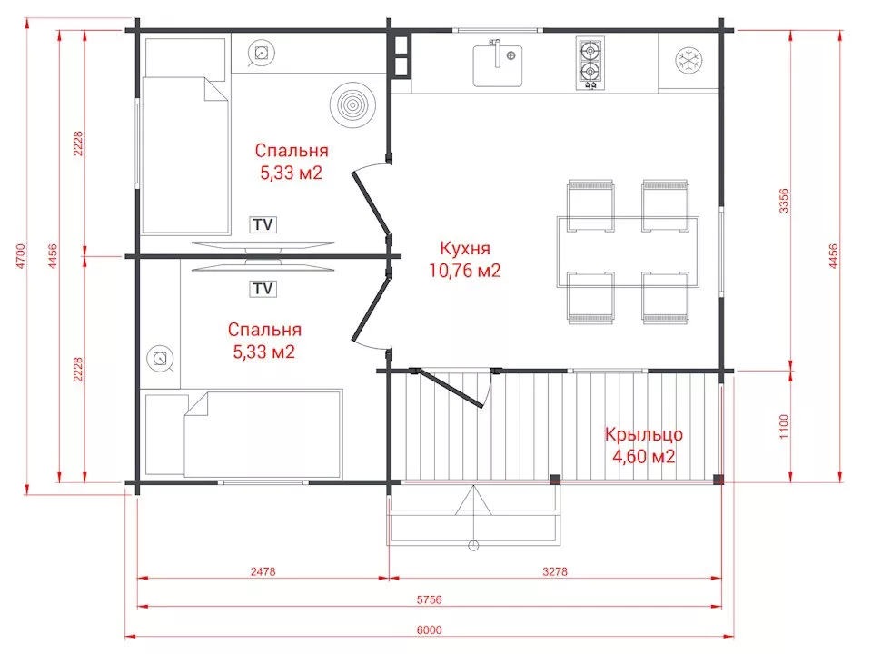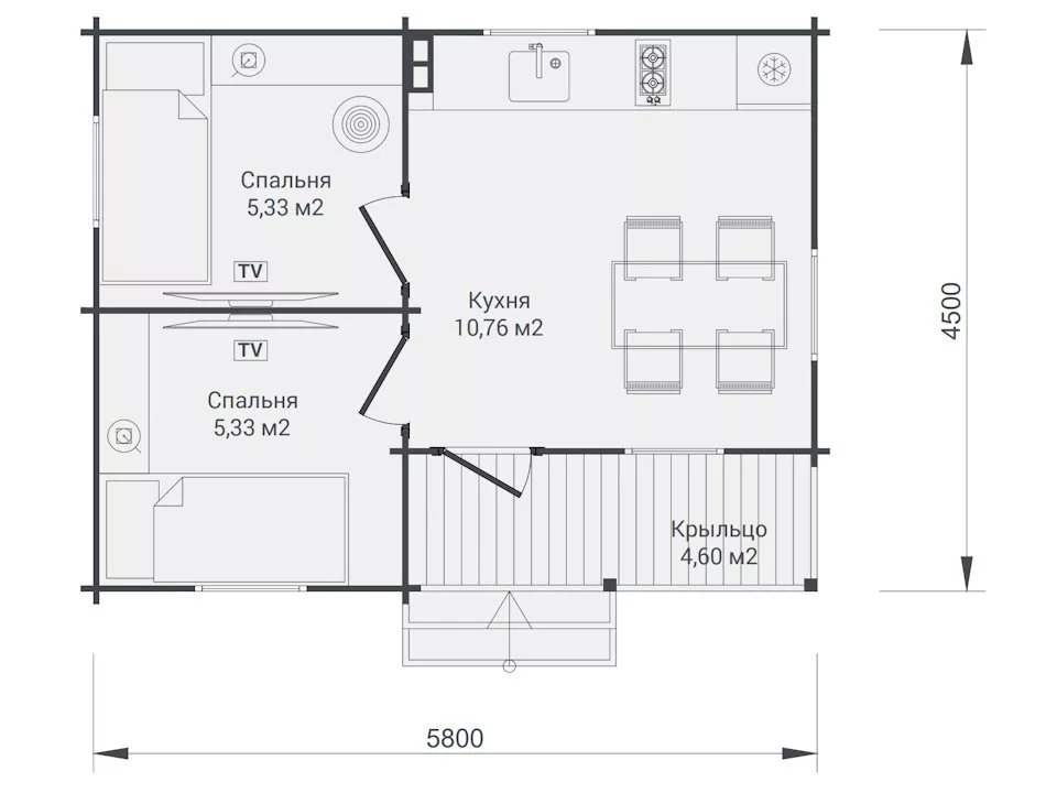 Насладившись и утолив жажду комфортной дачной жизни, удовлетворенные путники разойдутся по покоям-спальням. Здесь их две (по 5,3 м²).