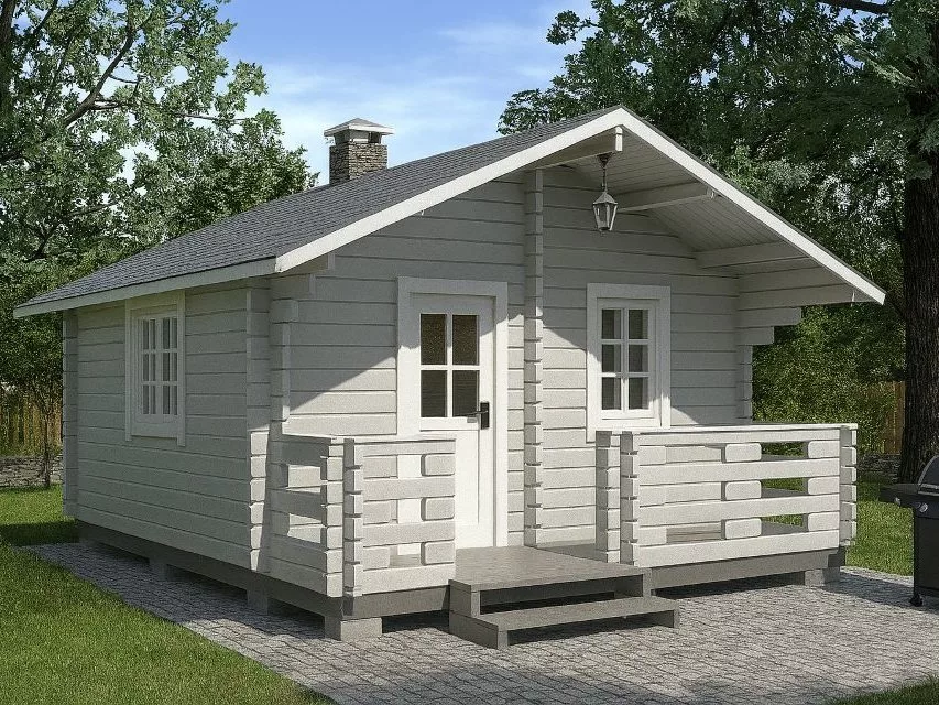 Наши конструкторы разработали оптимальный проект, сумев придать ему необходимую душевность. Начав наш обзор на небольшой, но такой нужной веранде-террасе (4,3 м²), пройдем в просторный предбанник – комнату отдыха (7,6 м²). Площадь позволяет разместить и стол для 3–4 человек, и при желании мягкую мебель.