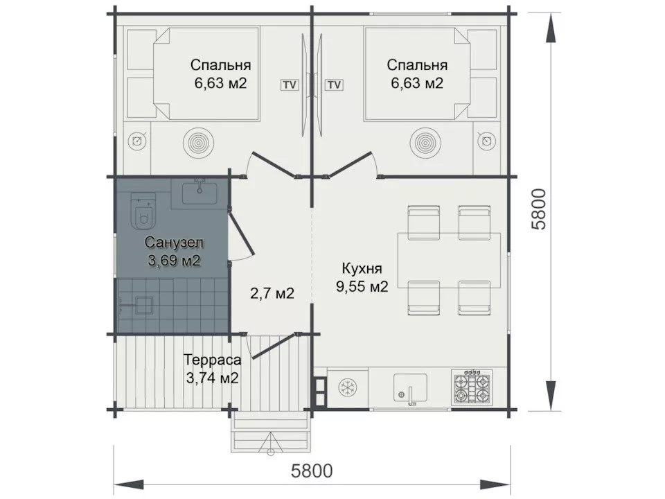 Площадь застройки | 5.80х5.80 м.кв. | |