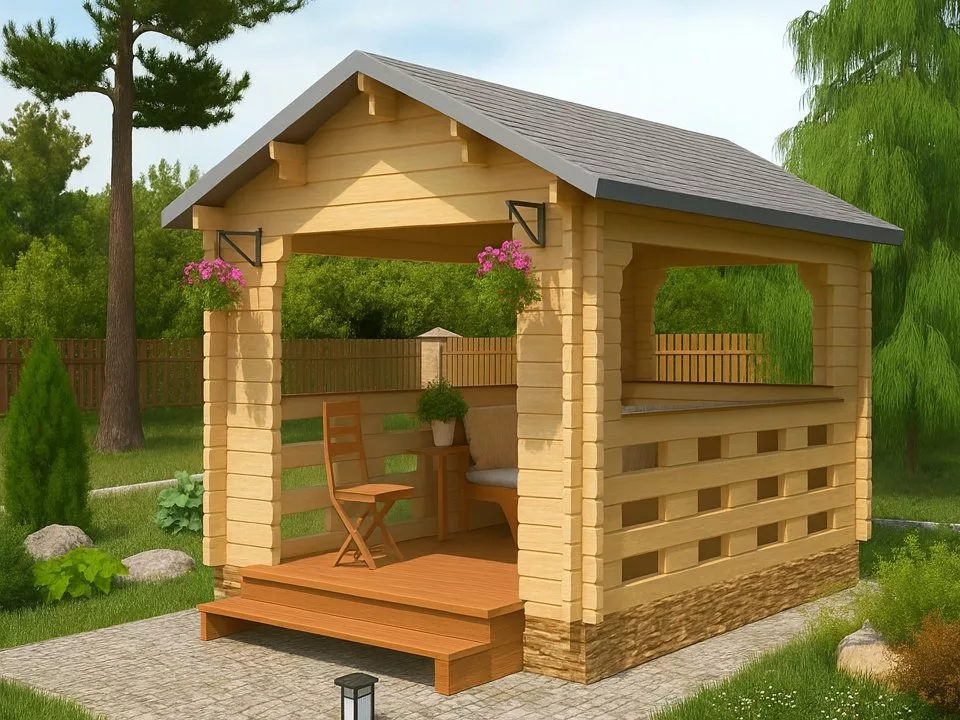 Присмотритесь к вместительной и аккуратной конструкции новой беседки, она будет вам полезна всегда -12 часов дня или ночи, все 12 месяцев года.