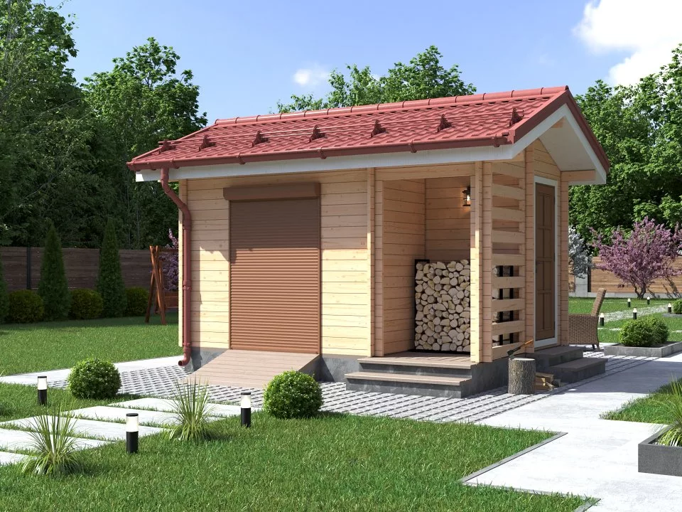 Наличие отдельного хозблока полностью решает проблему. Такая постройка обеспечивает возможность хранить все необходимое в порядке, иметь прямой доступ в технике и инструменту. Сооружение компактное, созданное из бруса, не занимает на участке много места.