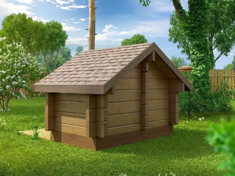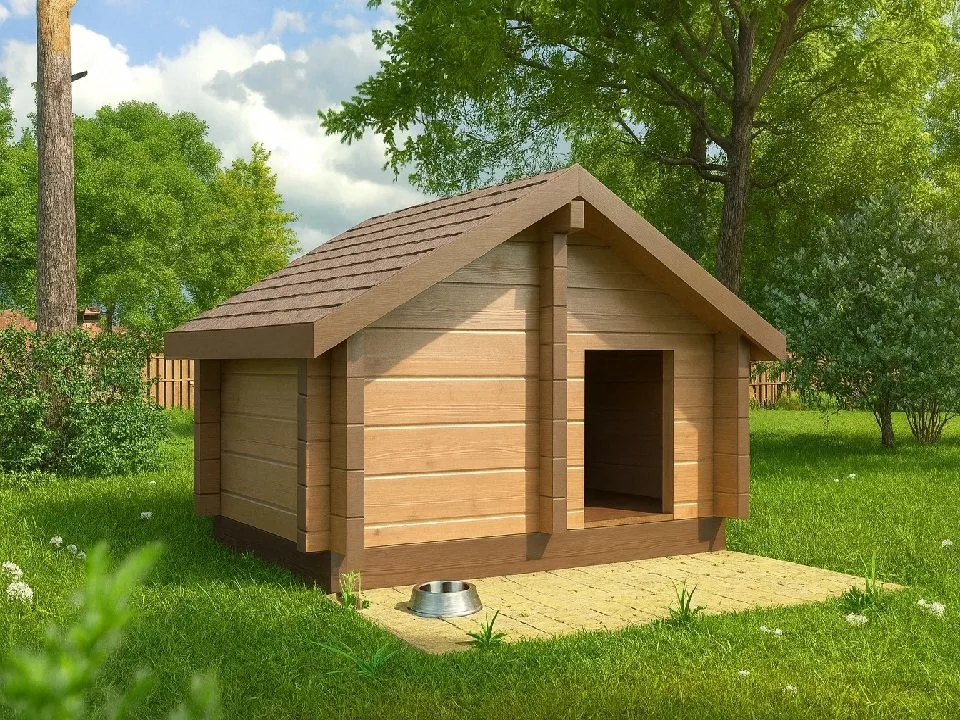 Внутри достаточно места для подстилки и мисок; вход удобен для ежедневного ухода. Все кромки тщательно обработаны — безопасно для лап и носов. Домик гармонично смотрится рядом с домом, баней или беседкой из дерева и легко вписывается в существующий ландшафт.