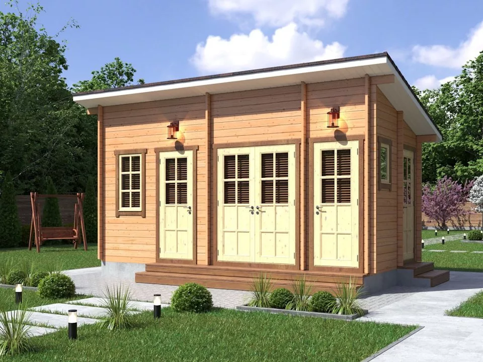 Обязательно присмотритесь к этому проекту садового домика от компании «ВираБуд». Хозблок 6х3 с душем и туалетом неспроста является одной из самых востребованных построек на даче. Он удобен в любом применении, будь то жилое использование, или в качестве строительной бытовки, мастерской, санузла и просто как сарай для кроликов или гусей.