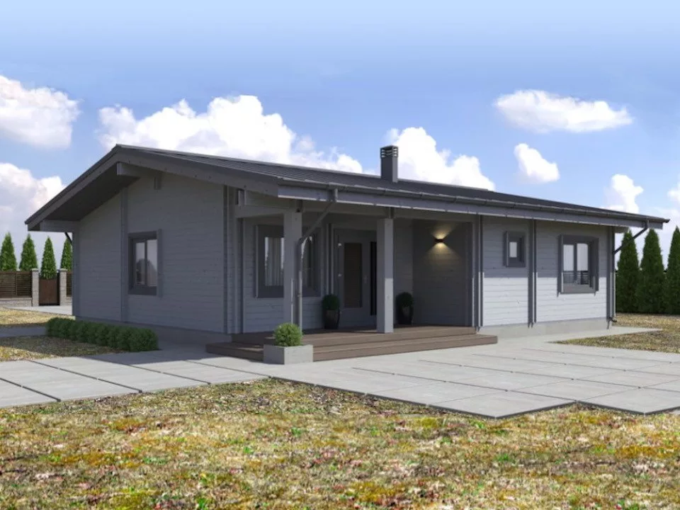 Проект «Береза Nord» - проект одноэтажного дома из категории до 100 кв.м. Дом имеет прямоугольную форму, простую двухскатную кровлю, экономичную толщину бруса.