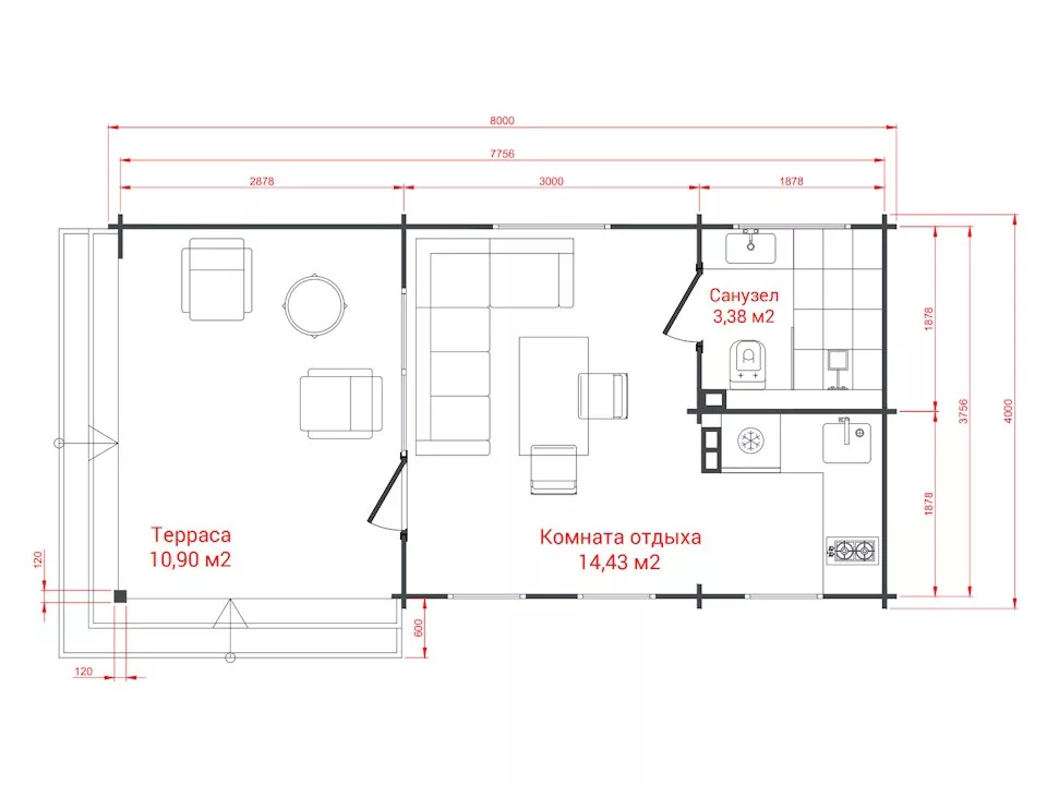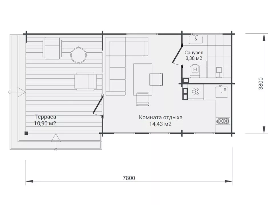 Наружные стены (17 венцов - высота стены 2,295 м), фронтоны и перегородки