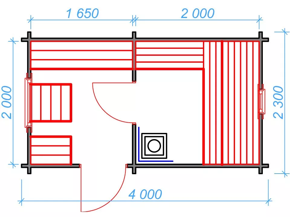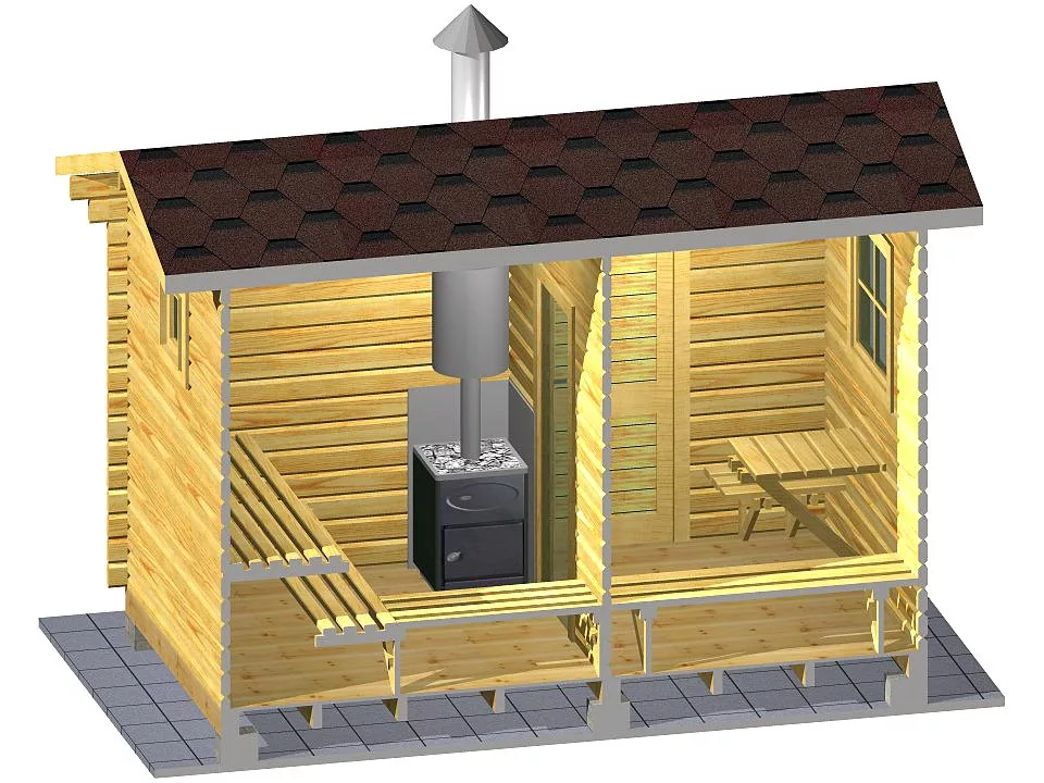 Площади парного отделения достаточно, чтобы максимально вместить 6 человек, или четверых с абсолютным комфортом. Такое же число людей может разместиться за столом в предбаннике, и в этом заключается основное отличие «Макси» от младших представителей семейства с комнатами отдыха скромных размеров.