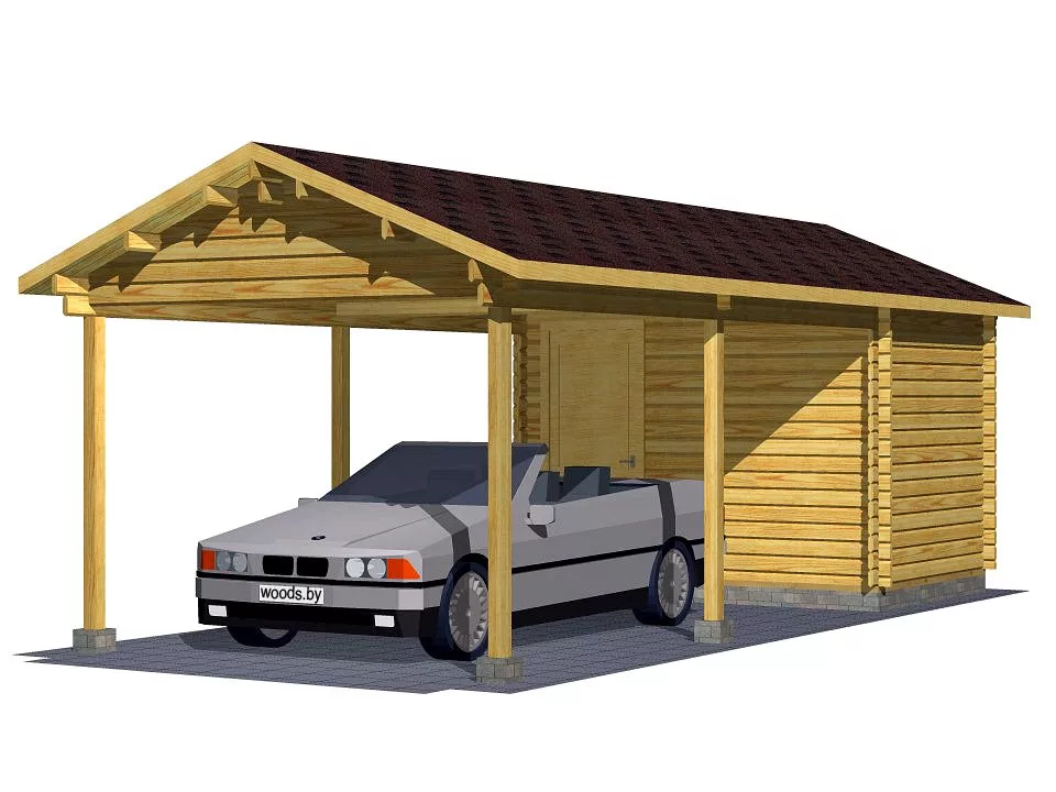 А может нужна домашняя автомастерская? Тогда этот проект также будет идеальным решением. Для работы или складирования инструмента, деревянный навес для автомобиля становится отличным дополнением любым загородным владениям.