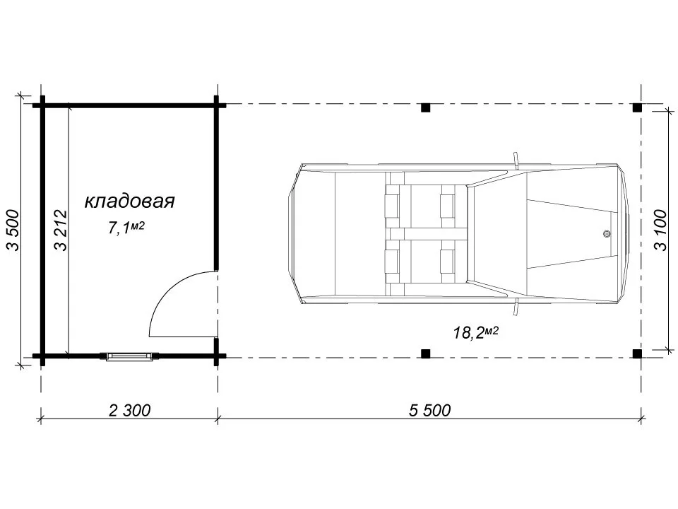 Новый проект гаража из бруса позволит не только укрыть авто, но и навести порядок вокруг него. Больше не придется запинаться о множество «нужных» вещей, которые обычно лежат в гараже и постоянно мешаются по ногами. «АвтоХаус» оборудован дополнительным хозяйственным помещением (7,1²), где можно удобно разместить все необходимое.