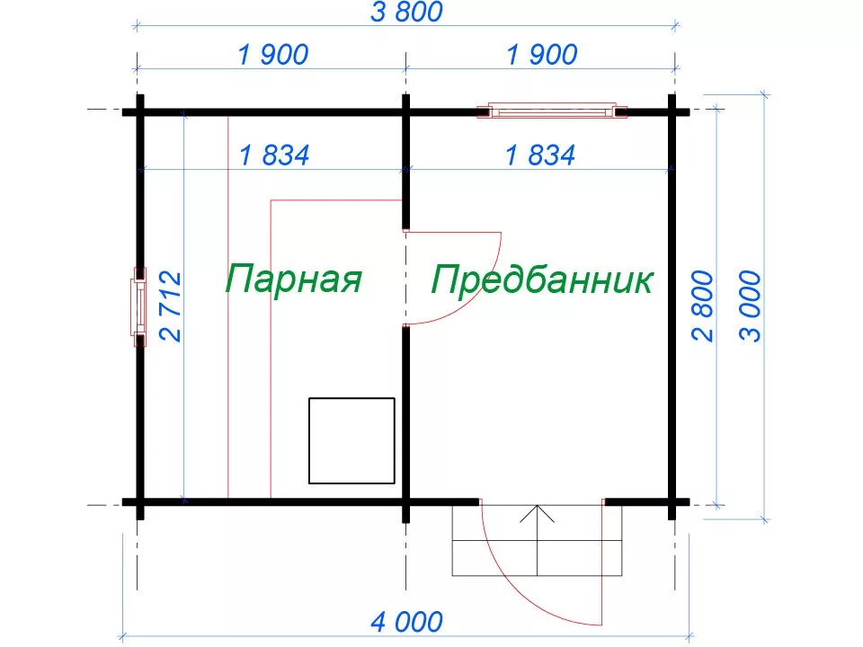 Дровяная печь, дымоход, экраны, продухи, лежаки и трапы поставляются за дополнительную оплату.