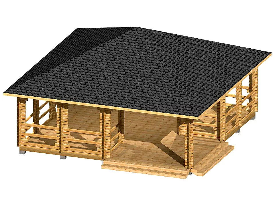 Кровельный настил (потолок) - имитация бруса камерной сушки толщиной 20 мм, влажность 12-14%.